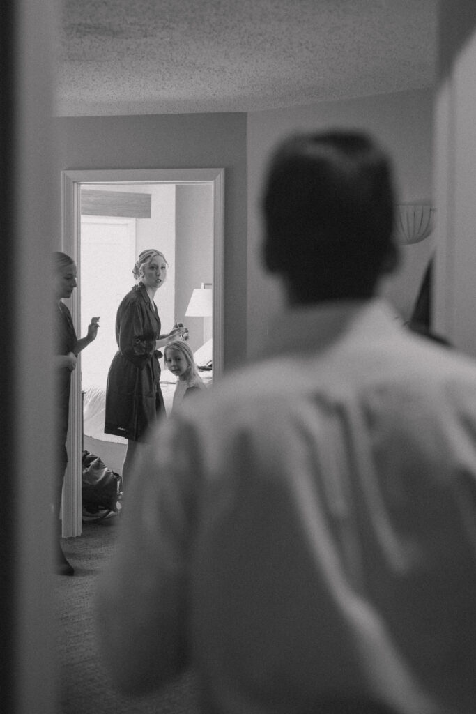 Jennifer and Abraham got ready just rooms apart. Close enough to feel one another’s presence. But still with space for their own quiet moments.