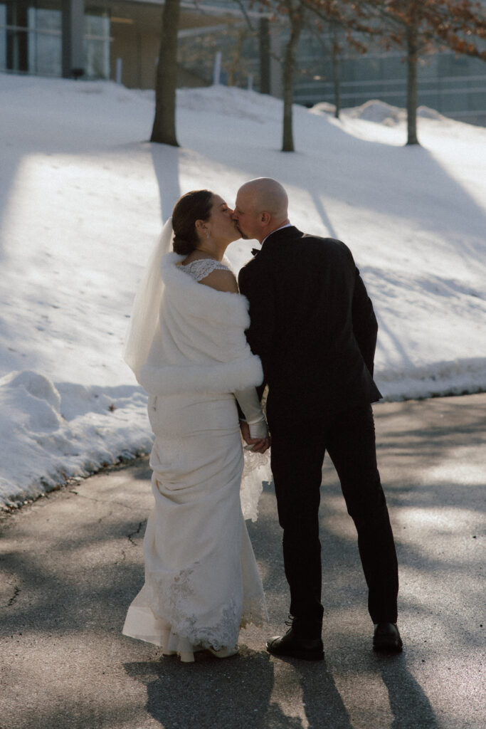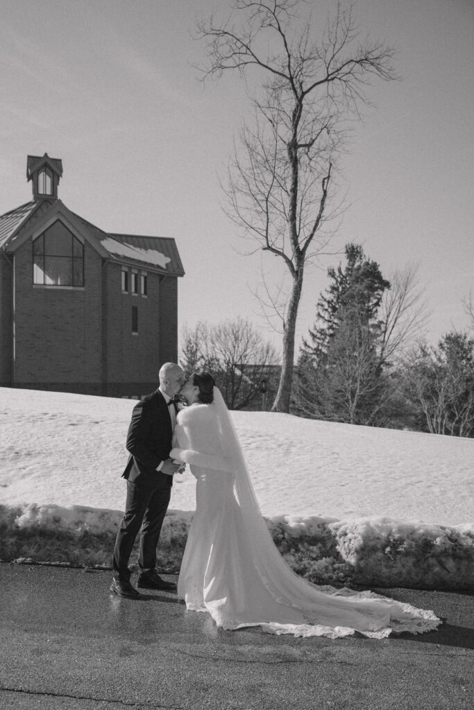Once private vows concluded we stepped into portraits. The grounds surrounding Smith Chapel at Penn State Behrend offered a quiet backdrop, allowing Jennifer and Abraham to simply be together. Instead of over-directing, I guided them gently and then stepped back, giving them space to move naturally and stay present with one another.